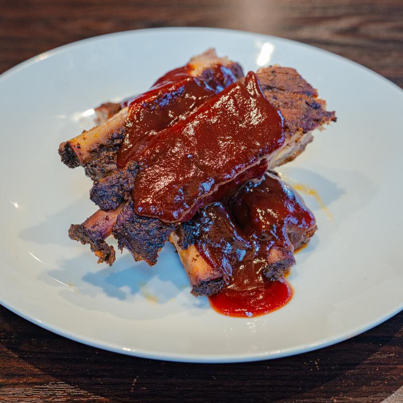 Enjoy our mouth watering BBQ Sauce that's layered with love on three tender pork ribs! Just delicious and savory. Choose any two side options. Also comes with two cornbread muffins.