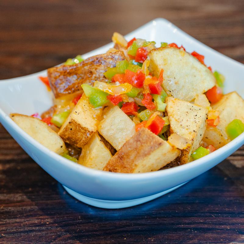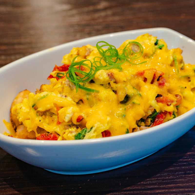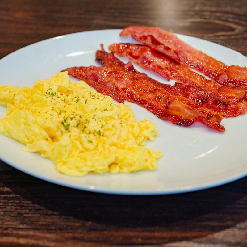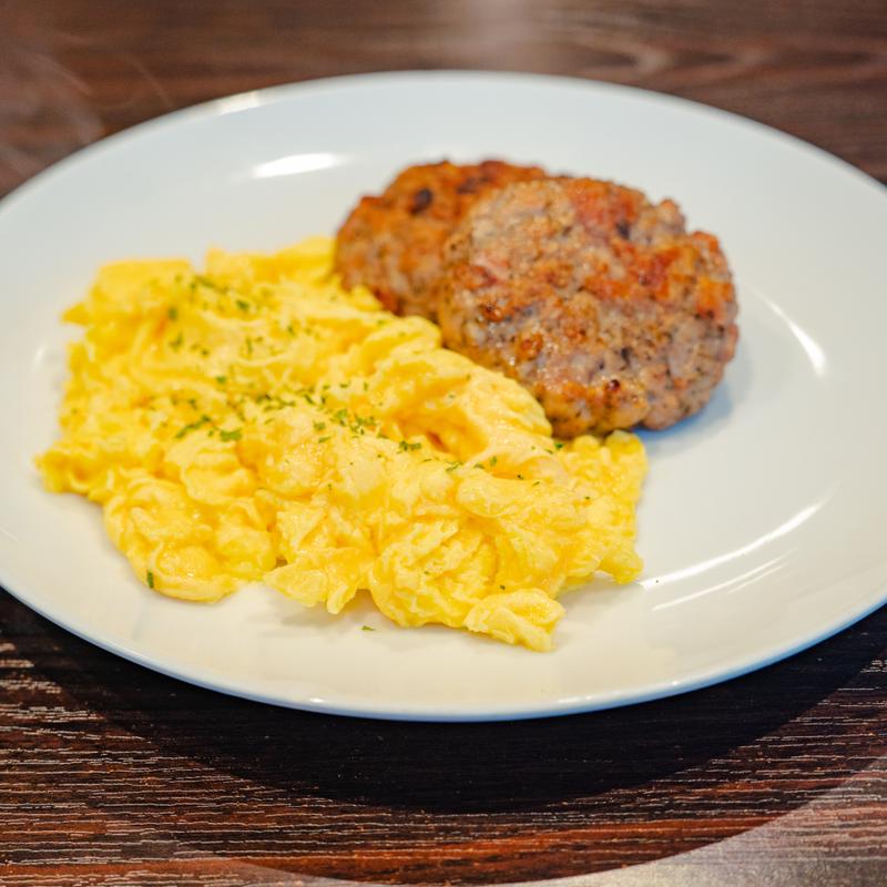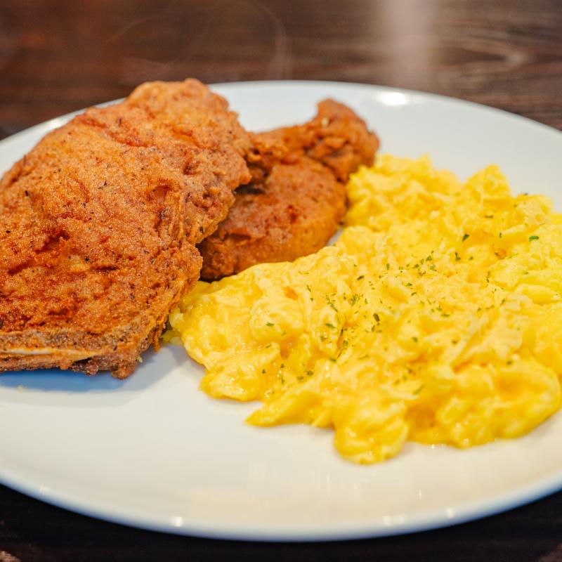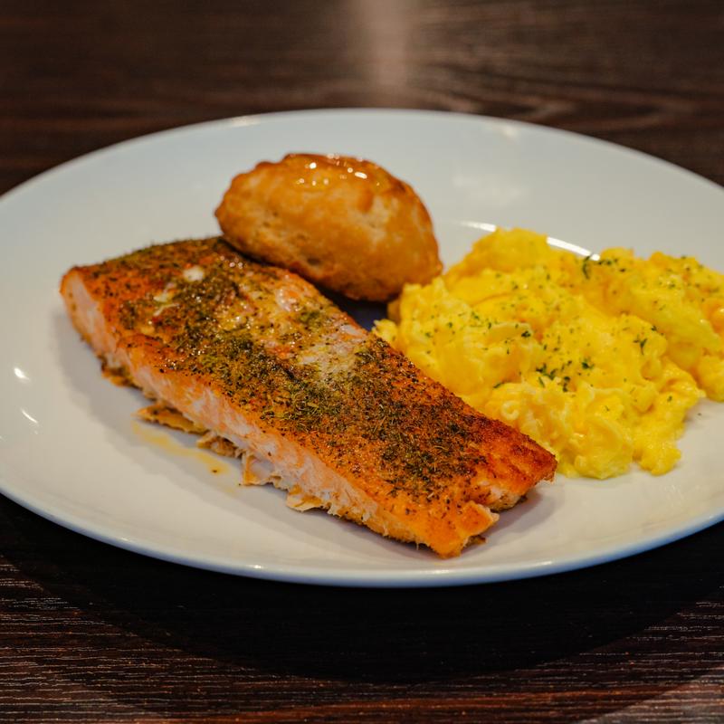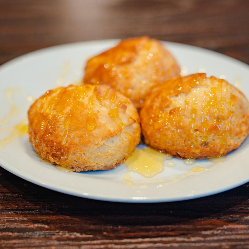 Served with two scrambled eggs, choice of potatoes or creamy grits, and a honey butter biscuits.