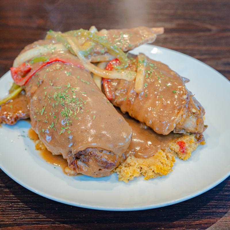 Baked Swai founded with dressing and your choice of two sides. Also comes with two cornbread muffins.