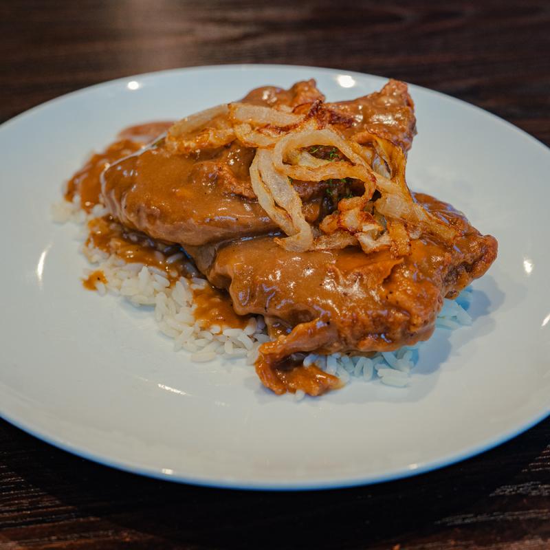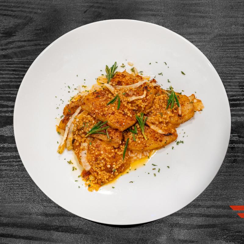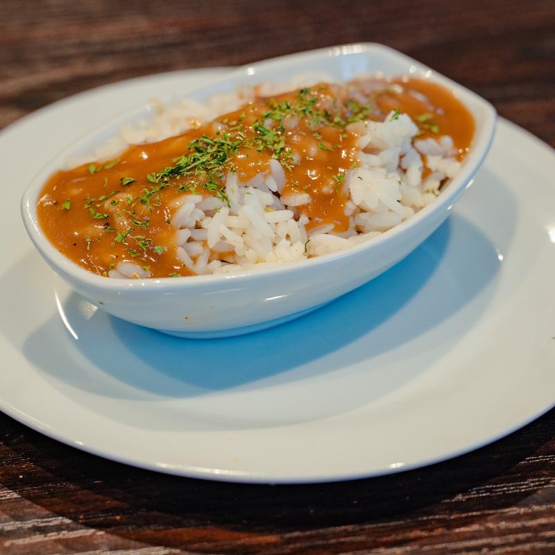 Founded with rice and your choice of two sides. Also comes with two cornbread muffins.