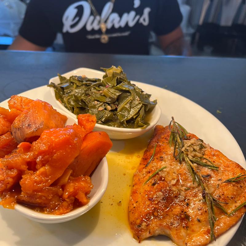 Fried Swai Fish with any two side options. Choose any two side options. Also comes with two cornbread muffins.